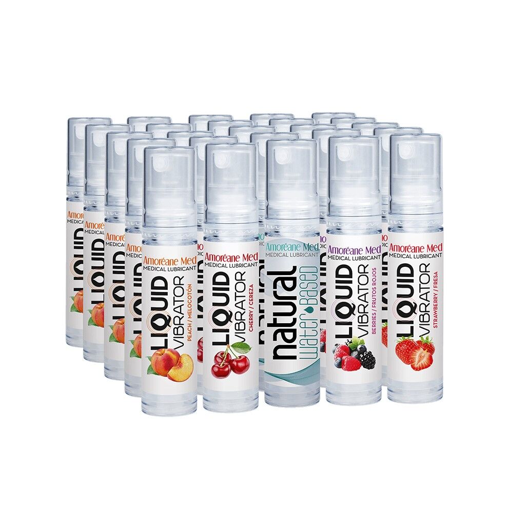 Данный набор содержит 4 вида лубрикантов с эффектом жидкого вибратора и лубрикант на водной основе с фитопланктоном. Каждый вид лубриканта представлен в бутылочка 10 мл по 5 штук каждого.