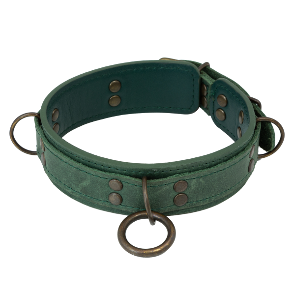 Зелёный ошейник LOVECRAFT с полукольцами и кольцом на центральной части, для крепления поводка для ошейника, карабинов или веревки для шибари: