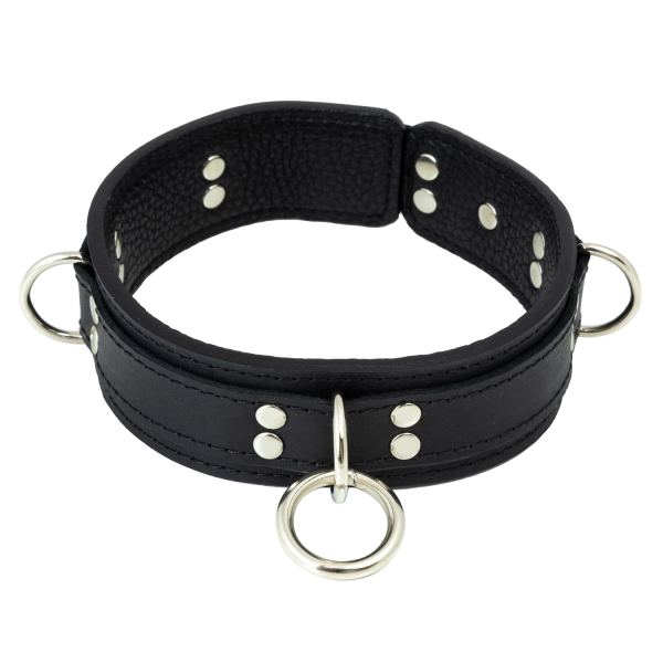Черный ошейник LOVECRAFT с полукольцами и кольцом на центральной части, для крепления поводка для ошейника, карабинов или веревки для шибари: